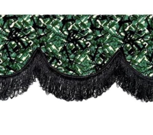 ? Deense pluche GROEN + zwarte franjes ? 10 bogen ? Totale hoogte 26cm ? Hoogte bogen 19cm -> zonder franjes ? Hoogte franjes 7cm ? Lengte 240cm ? Voorzien van velcro ? 100% kwaliteit