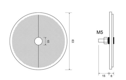Reflector rond rood ?6,3cm + vijs M5