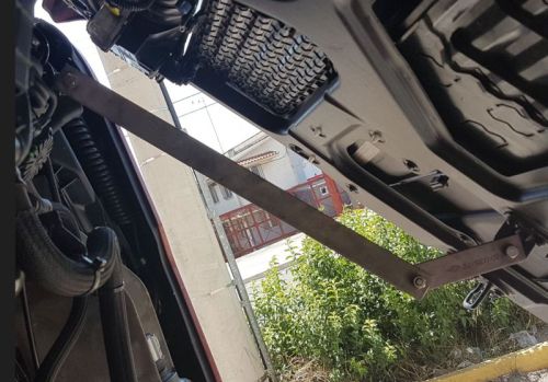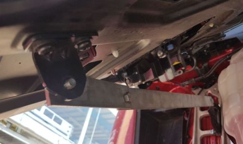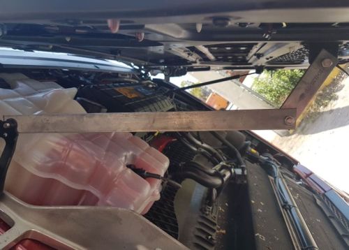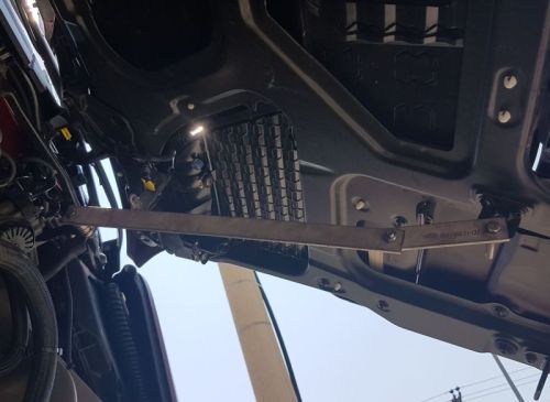 Scharnier in inox om motorklep vast te zetten bij montage van steenvanger polyester bij Scania R/S Next Generation 2016->