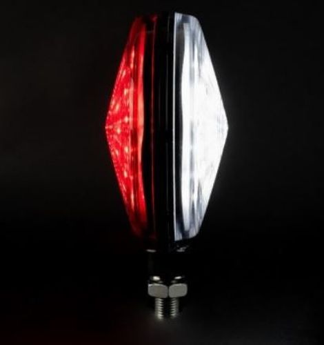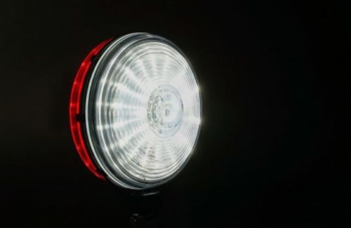 "Wit aan de ene kant, rood aan de andere 48 stks 0,5 W LED (24 stks aan elke kant) IP67-classificatie (water- / stofdicht) Voltage: 10-30 V Diameter: 109 mm Hoogte: 125 mm (150 mm incl. Schroef) Diepte: 59 mm Kabellengte: 40 cm Gewicht: 240 gram"