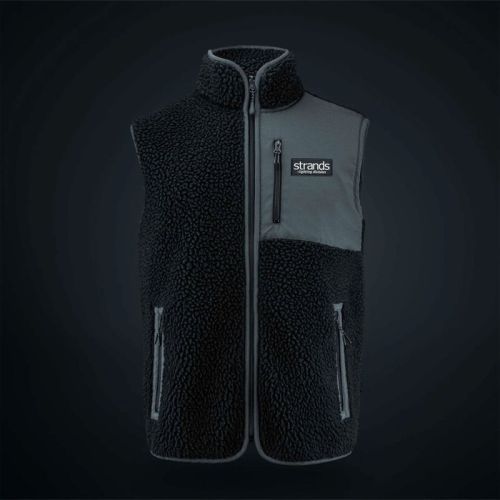 "Warm, knus en 100% passie. Dit zachte fleecevest met rits is gemaakt van gerecycled polyester en combineert duurzaamheid, comfort en onderhoudsgemak. Het Strands-logo is op de borst geborduurd en het vest heeft drie zakken met rits om je spullen bij de hand te houden. Contrasterende stof op de borst en langs de naden geeft een stijlvolle, kenmerkende touch die het onmiskenbaar Strands maakt."