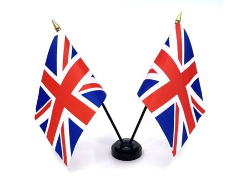 Set van twee tafelvlaggen. De set bestaat uit twee vlaggen en een zwarte vlaggenhouder. Hoogte van de vlaggen: 28cm. Breedte van de vlaggen: 20 cm