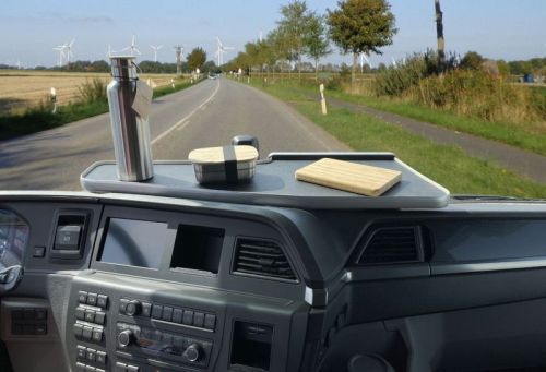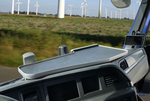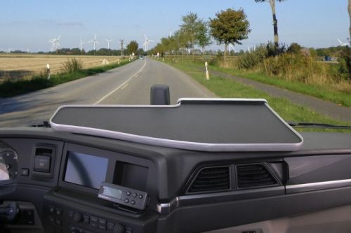 "Afwerking basis zwart/boord in het zilver ! (foto in bijlage is indicatief) Trucktafel chauffeurskant ?MAN