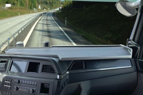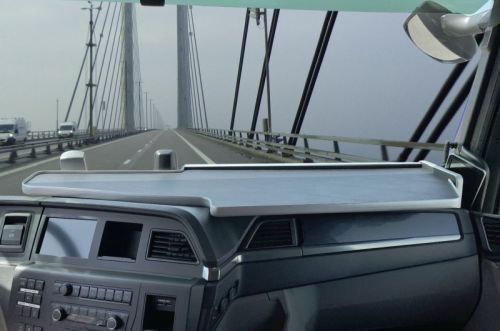"Afwerking volledig ZWART ! (foto in bijlage is indicatief) Trucktafel voor het hele dashboard ! (chauffeurskant tot passagierskant) *MAN