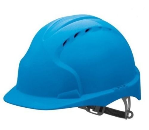 "Helm uit Polyethyleen met 6-punts kunststof draagbanden, verstelbaar binnenwerk, geventileerd, standaard klep, one touch treksluiting voor een perfecte aanpassing aan het hoofd. EN 397 "