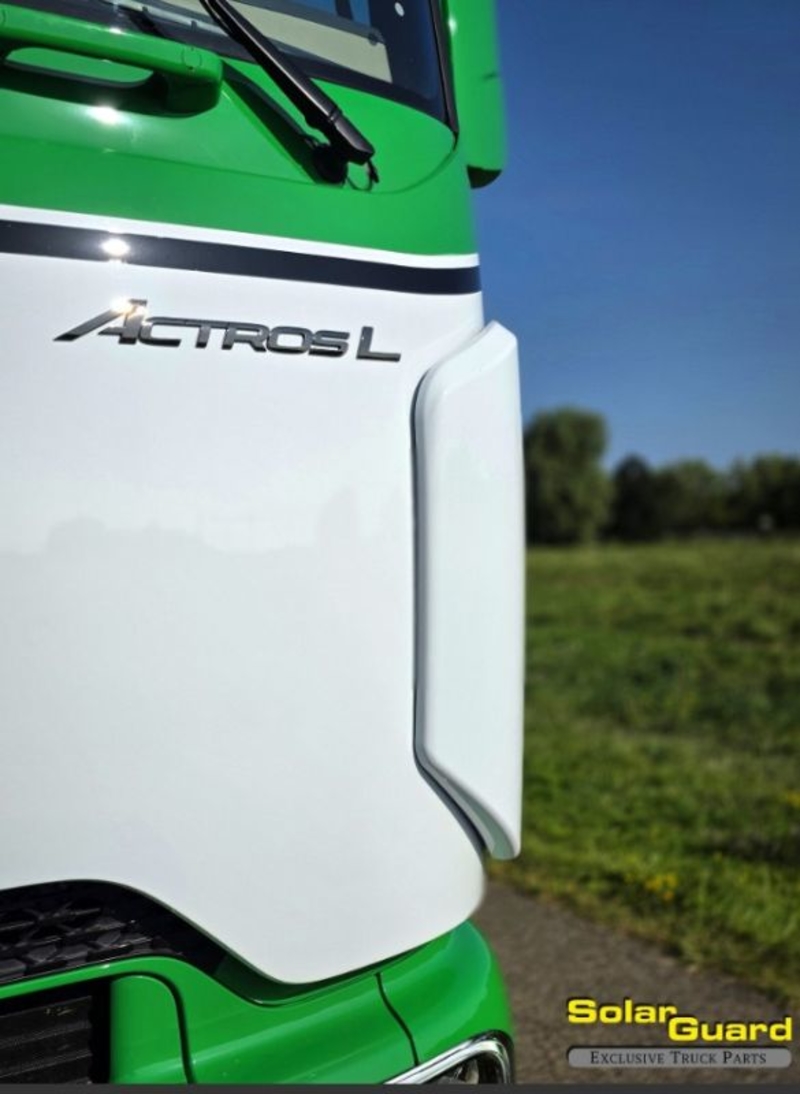 "Solar Guard Exclusive Truck Parts presenteert een accessoire voor truckstyling: Hoekschilden voor de cabine van de Mercedes-Benz Actros Pro. Ze geven een strakke, solide voorkant en zorgen voor een stoerdere, consistentere look terwijl ze de cabine beschermen tegen vuil en steenslag. De onderdelen volgen de originele lijnen van de Actros Pro, met een gedetailleerde afwerking en een betrouwbare OEM+ pasvorm die aansluit zoals het hoort. Kenmerken in één oogopslag: • Speciaal ontworpen voor de Mercedes-Benz Actros Pro cabine • Schone, gedetailleerde afwerking die de originele lijnen van de truck volgt • Beschermt de cabine tegen vuil en steenslag • Lichtgewicht, sterke constructie voor duurzaam, zwaar gebruik • Past op de originele montagepunten met nette uitlijning zonder spleten • Betrouwbare OEM+ pasvorm afgestemd op de originele carrosserie"