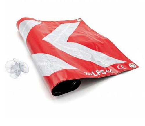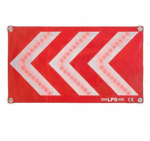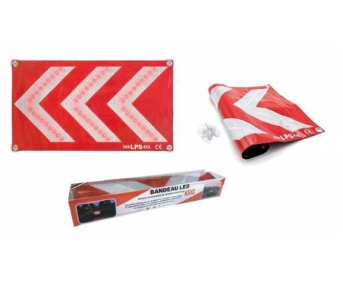 "? Nieuw verkeersveiligheidsaccessoire in aanvulling op wet R416.19 van de wegcode ? 69 x 40 cm LED-signalisatiestrip voor automobilisten bij pech of ongeval ? Zichtbaar op meer dan 200 meter dankzij het systeem van 3 grote reflecterende witte pijlen (klasse 2) en de uitrusting van 78 high definition rode LED's ? Snelle en eenvoudige installatie, onderhouden door 4 omkeerbare zuignappen en/of magneten ? Zacht en licht, neemt weinig ruimte in beslag ? Werkt met 3 AA 1.5V LR06 batterijen (NIET MEEGELEVERD) ? Ontsteking met drukknop ? Gemaakt in Frankrijk CE-norm ? 2 jaar garantie"