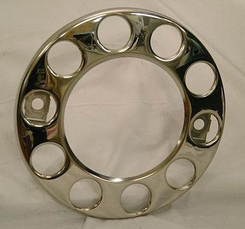 "Prijs per stuk / Stalen velg / OPEN wielmoerRING in roestvrij staal. Geschikt voor STAALvelgen met 10 bouten, diameter montagegaten 23 mm, en steek 335 mm. Montage onder twee originele bouten/moeren"