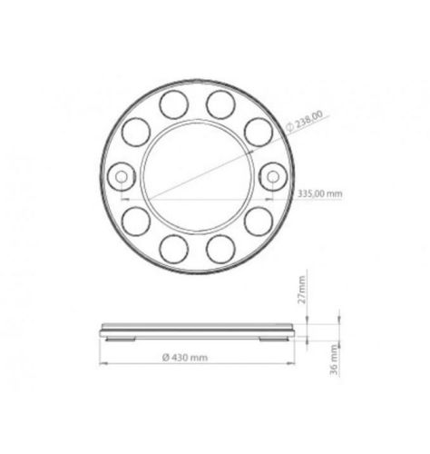 "Prijs per stuk / Diameter binnenste opening 23,5cm / Voor montage op stalen velg / RAL 1018 "
