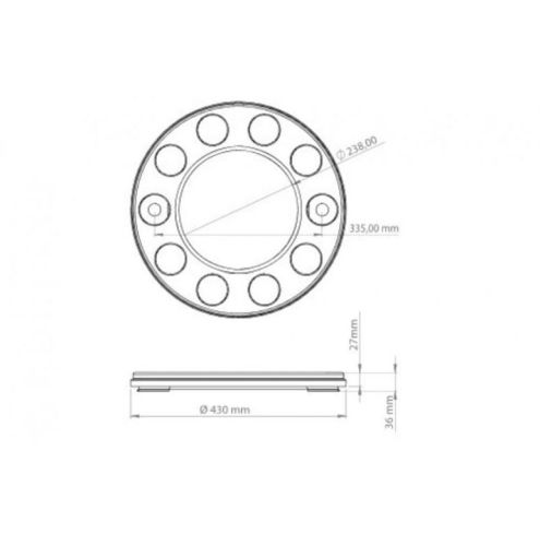 "Prijs per stuk / Diameter binnenste opening 23,5cm / Voor montage op stalen velg / RAL 3000 "