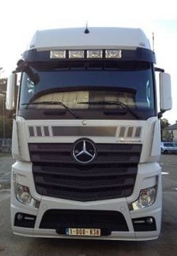 "Voor Mercedes MP4 Big/Giga Space met 4 uitsparingen voor Hella 320 FF - Inclusief montagesteunen voor zonnescherm en verstralers - Montage verstralers zonder te boren in de cabine - Optimale bescherming tegen invallend zonlicht in de cabine ! - Plexi is gemaakt uit doorzichtige acrylic - Geeft uw vrachtwagen een moderne styling - Verstralers niet inbegrepen, te verkrijgen tegen meerprijs "