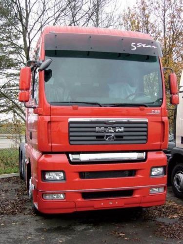 "Voor MAN TGA XXL, brede cabine met hoog dak. Het zonnescherm is gemaakt van hoogwaardige materialen en wordt steeds compleet geleverd : antraciet-kleurige plexi en metalen steunen, eerst verzinkt en daarna bedekt met poederlak. Het plexi gedeelte, ook apart leverbaar, kan als vervangstuk dienen voor een origineel zonnescherm. "