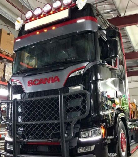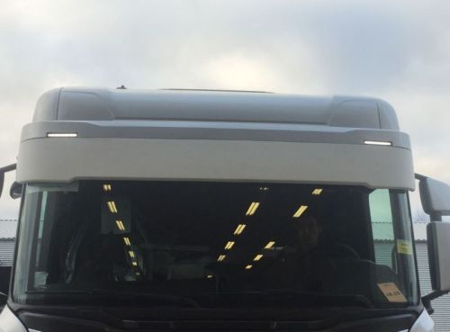 Basis in polyester wit (kan in gewenste kleur worden gespoten)/ Niet transparant / Hoogte van 24cm / Zonneklep voor Scania R/S new generation 2016-> Verlengstuk zonneklep Scania next generation. Heeft zowel de mogelijkheid voor 2 of 5 toplichten. Origineel bovendeel wordt terug gemonteerd op de zonneklep. Montage op originele punten. Dit product vereist voorbehandeling en primer.