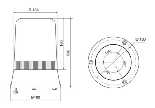 Zwaailamp halogeen GROEN (type 595)24V 3-puntsbevestiging