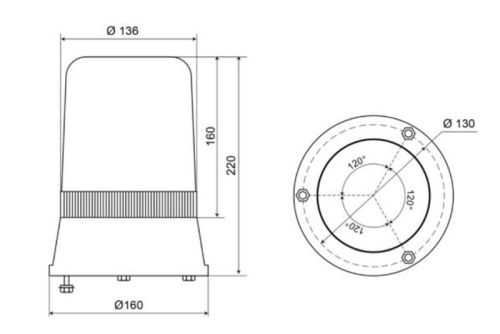 Zwaailamp halogeen ORANJE (type 595) 24V 3-puntsbevestiging