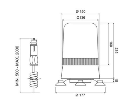 Zwaailamp halogeen ORANJE (type 595) 24V magnetische voet
